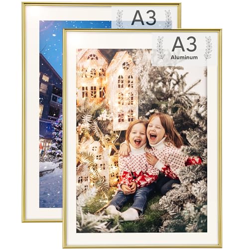 Rieeyrslza 2 Stycken Fotoramar av Aluminium Arkivhållare 29, 7x42cm A3 Ramvägg Fotoram för Bordsram Fotoram för Affisch på Väggen Lämplig för Hemskolor Gallerier(Guld)