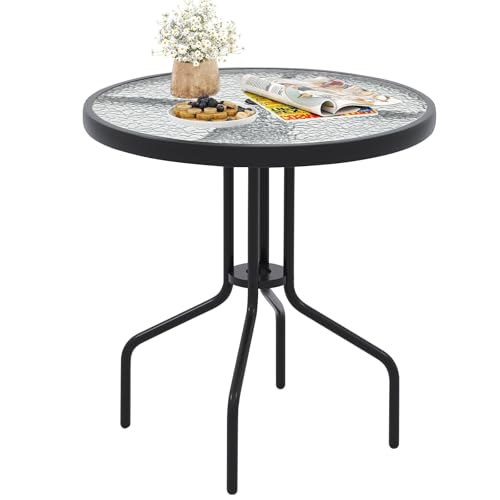 FANTASK Bistrobord med bordsskiva av härdat glas, 70 x 70 x 71 cm, runt balkongbord, utomhusmatbord för terrass