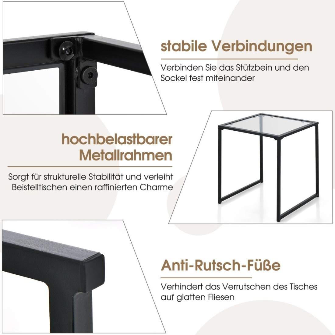 Sidobord litet trädgårdsbord balkongbord med bordsskiva av härdat glas 43 x 43 x 45 cm svart