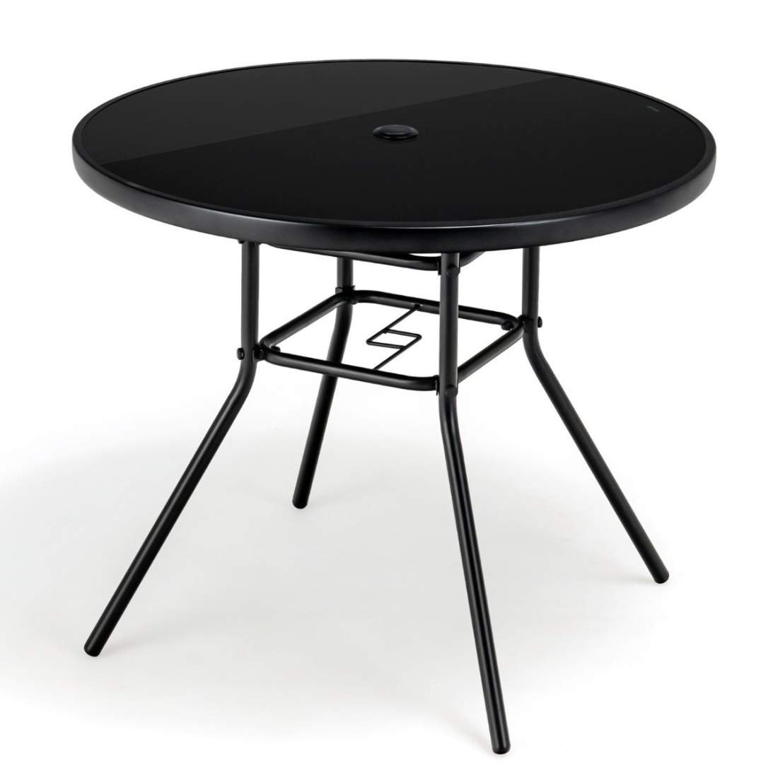 Trädgårdsbord med bordsskiva i härdat glas uteplatsbord med paraplyhål 86 x 86 x 71 cm svart