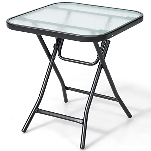 COSTWAY Sidobord, litet trädgårdsbord, balkongbord med bordsskiva av härdat glas, soffbord för vardagsrum, trädgård, balkong, terrass, 43 x 43 x 45 cm