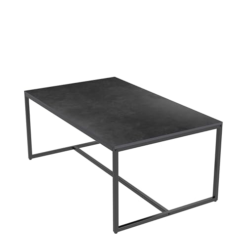 FATIVO Soffbord i marmor rektangel: Stort svart soffbord 100 cm långa marmor sintrade sten bordsskiva med robusta metallben modernt soffcenter för vardagsrum möbeldekor