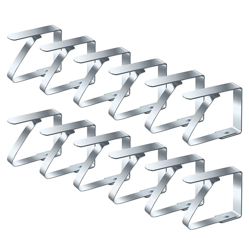 Vaily Bordsduksklämma rostfritt stål uppsättning om 12 – bordsduksklämma för picknick, grillning, fester och julfester – bordsklämmor för bordsskivor upp till 3 cm tjocklek
