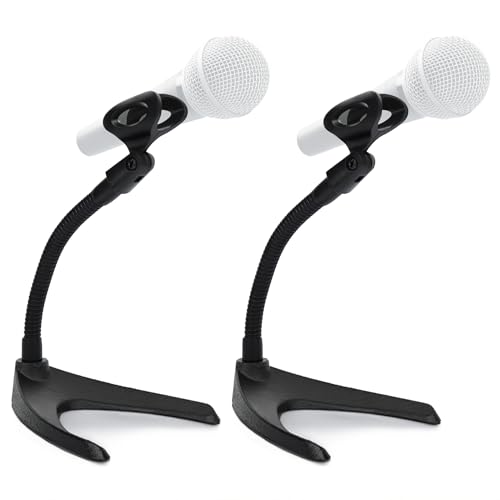Universellt justerbart skrivbordsmikrofonstativ – mikrofonhållare med låg profil mikrofonstativ med flexibel 20 cm svanhals montering och u-formad bas – bordsskivor, skrivbord, podium, bänkanvändning