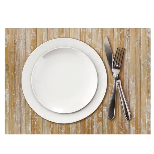 Comart - Amerikansk Bamboo Edge Bordstablett - Set med 4 bordstabletter 30 x 45 cm - Tvättbara - Värmebeständiga - Till Frukost, Lunch - Eleganta Undertallrikar - Miljövänlig I Bambu - Tvättvit Färg