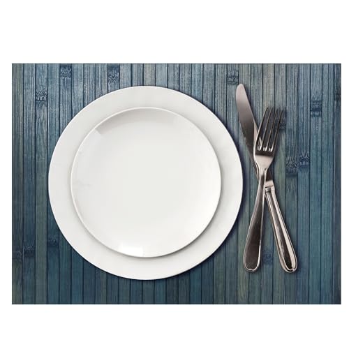 Comart - Amerikansk Bamboo Edge bordstablett - Set med 4 bordstabletter 30 x 45 cm - tvättbara - värmebeständiga - till frukost, lunch - eleganta bordstabletter - miljövänligt i bambu - blå