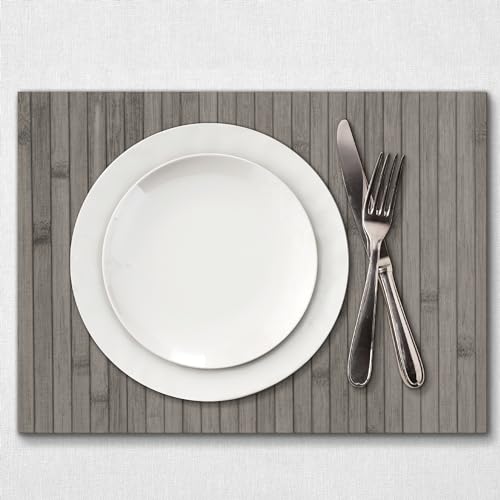 Comart - Amerikansk Bamboo Edge bordstablett - Set med 4 bordstabletter 30 x 45 cm - tvättbara - värmebeständiga - till frukost, lunch - eleganta bordstabletter - miljövänligt i bambu - grå färg