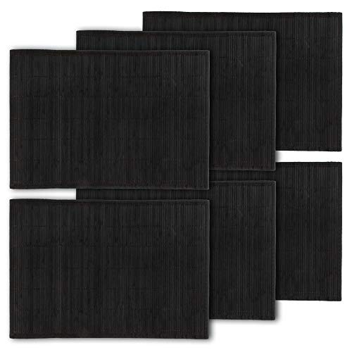 Relaxdays Bordstablett, 6 x underlägg, servis, drycker, bordsskydd, fyrkantig, 45 x 30 cm, bambu, snygg, svart, trä