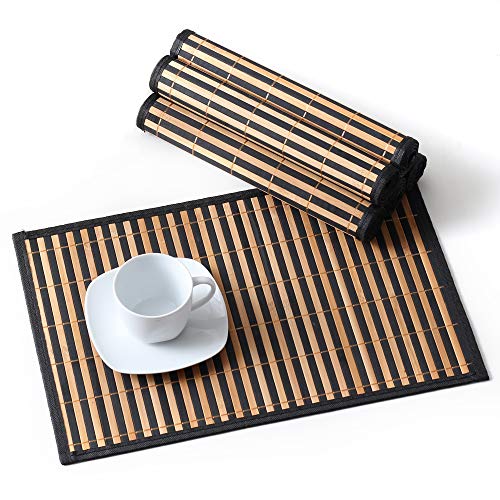 Comart - Amerikansk Bamboo Edge bordstablett - Set med 4 bordstabletter 30 x 45 cm - tvättbara - värmebeständiga - till frukost, lunch - eleganta bordstabletter - miljövänligt i bambu - chokladfärg