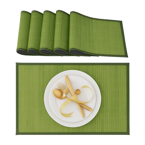 Comart – amerikansk bordstablett bambu kant – set med 4 bordstabletter 30 x 45 cm – tvättbar – värmebeständig – för frukost, lunch – eleganta bordstabletter – miljövänliga av bambu