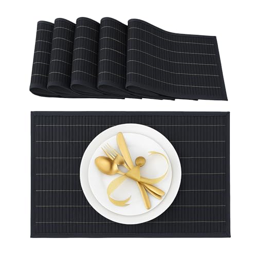 BambooMN Bordstablett i bambu med tygkant – enfärgat tryck – 45 x 33 cm – svart, 6 st