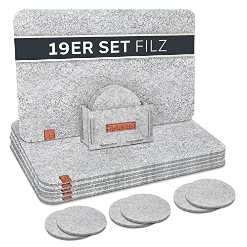 TULENO® Bordstablett Filt Grå 19 Delar - Tvättbara Bordsunderlägg Inklusive Underlägg - Halkfria Bordstabletter För Matbord
