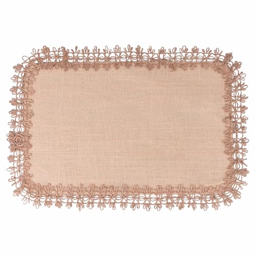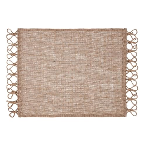 Rektangulär bordstablett 45 x 30 cm jute, broderad kant med fransar