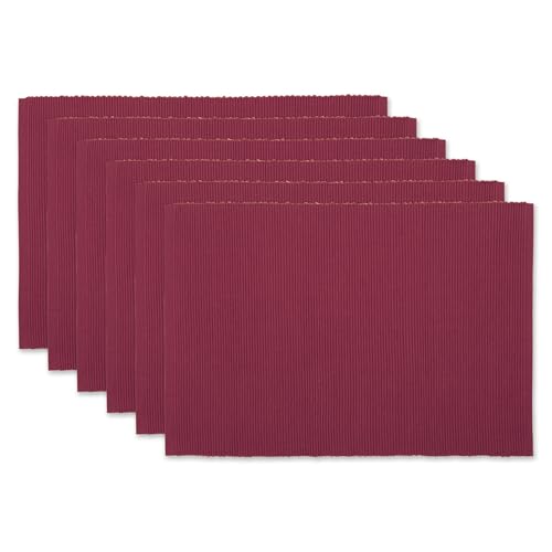 DII Basic Everyday ribbad bordsskiva 100% bomull, set med bordstablett, 13 x 19, kardinalröd, 6 delar
