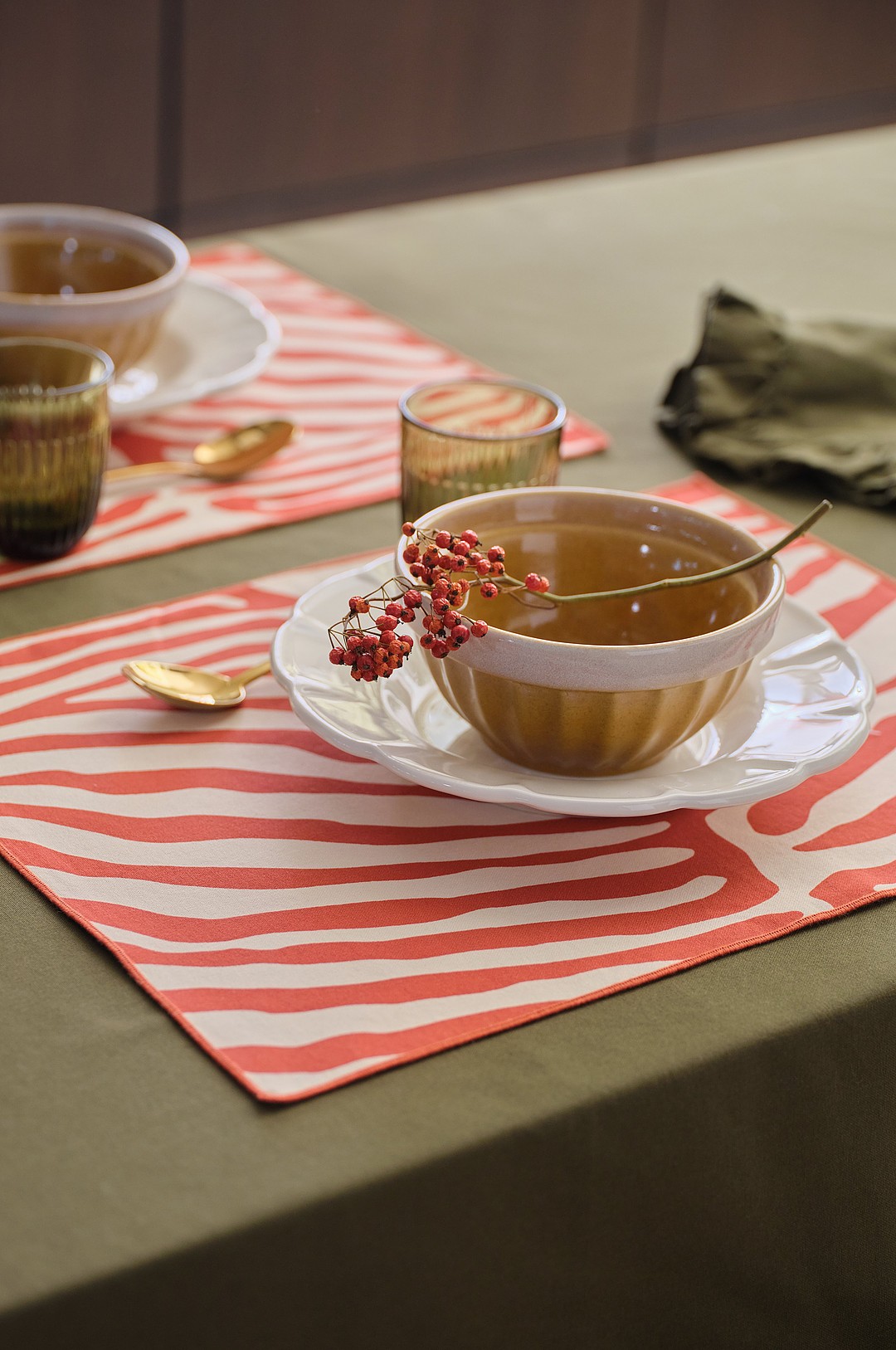 Chamois - Bordstablett med volanger Jaipur STRIPE, set om 2 - Röd