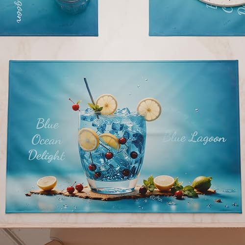IPEA Eleganta amerikanska bordstabletter 45 x 30 cm för middag, lunch, frukost - 6 enheter - Tvättbara, värmebeständiga, halkfria, fläcksäkra bordstabletter för köksbord och vardagsrum - blå