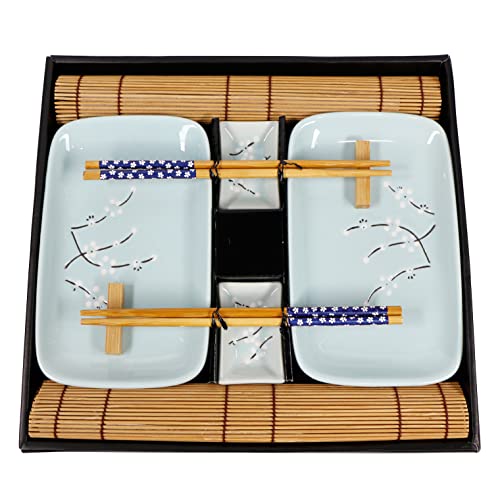 Exzact Sushitallriksset 10 st - 2 x sushitallrikar, 2 x dippskålar, 2 x bordstabletter, 2 x ätpinnar, 2 par ätpinnar - porslin av hög kvalitet - vackert presenterad i presentförpackning - blå