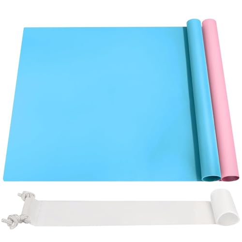 2 stycken silikonmattor, stor 70 x 50 cm, silikonmatta för epoxiharts, pysselunderlägg, silikon, pysselmatta, målunderlägg för barn, halkfritt silikonunderlag, bordstabletter, bordsmatta (rosa/blå)