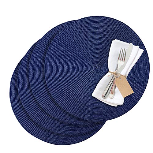Venilia Bordstablett blå rund, bordstablett för matsal, matbordsmattor, tallriksunderlägg, bordstabletter, vävd, livsmedelssäker, 38 cm, 4 stycken, 59125
