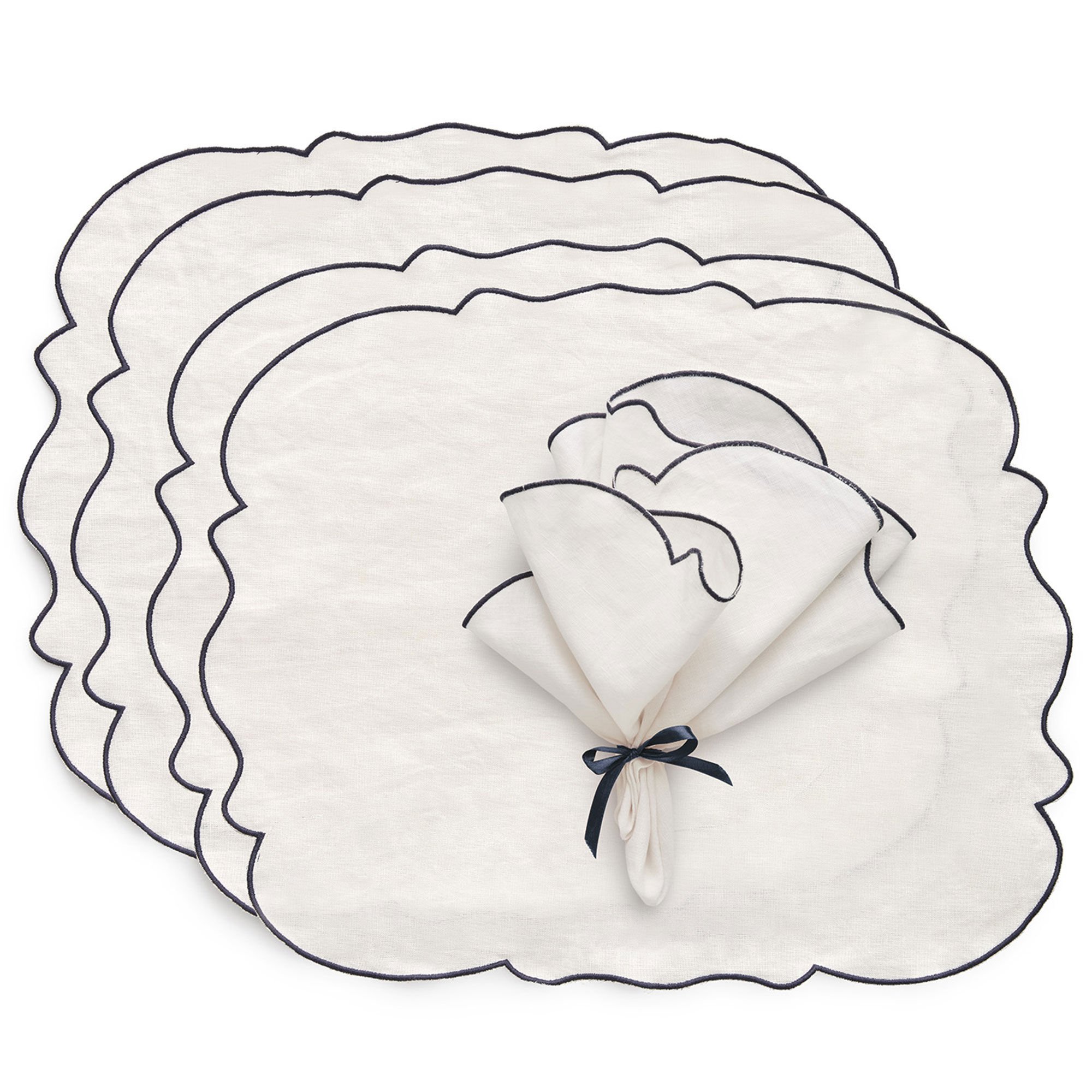 - Decotique Gia textilset 4 bordstabletter + 4 servetter, vit/blå