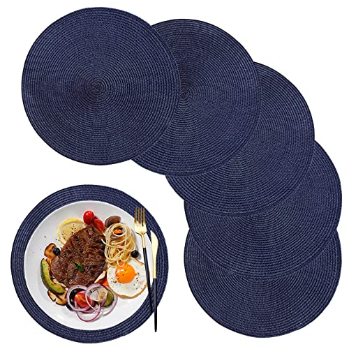 SHACOS Set med 6 Tvättbara Runda Blå Bordstabletter, Flätade Värmebeständiga Smutsavvisande Bordstabletter för Bröllop, Restaurang, Kök, Fest