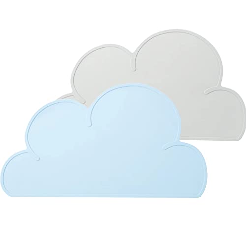 PandaEar 2 stycken bordsunderlägg barn silikon bordstabletter set moln | halkfri bordstablett avtorkbar silikon bordsunderlägg bordsmatta för baby småbarn och barn (blå grå)