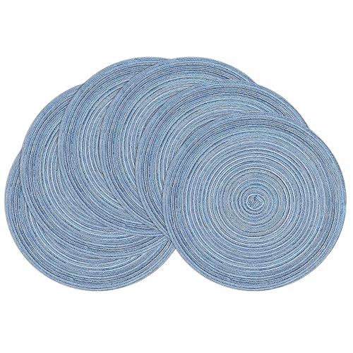 FunWheat runda flätade bordstabletter set med 6 bordsmattor för matbord vävda tvättbara halkfria bordsunderlägg 38 cm för sommaren (blå, 6 st)