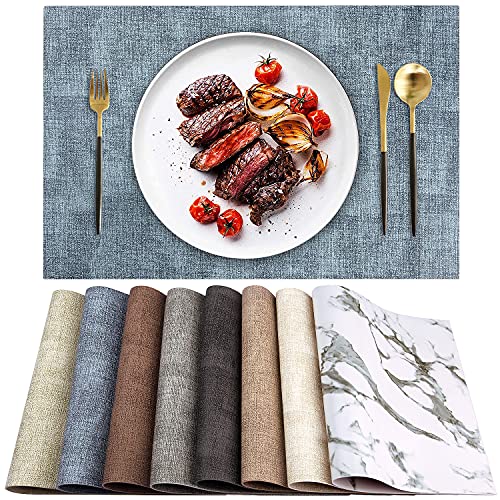 Homaxy Tvättbara bordstabletter set med 6 vattentäta bordstabletter, bordstabletter avtorkbara, dubbelsidiga bordstabletter i läder, halkfria bordstabletter, vackra bordstabletter, blå