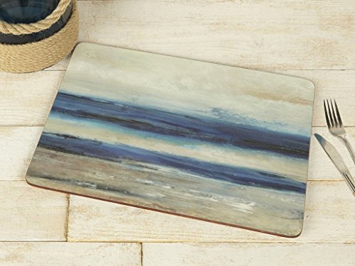 Kreativa toppar 5169621 Cornish Harbour 6-delad uppsättning av korkstöd bordstabletter av, 30 x 22,8 cm (12 tum x 9 tum), blå, medelstora bordstabletter