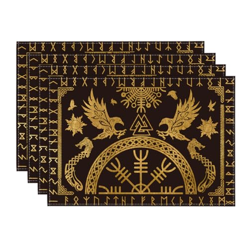 Artoid mode guld viking livets träd rav hjälm av vördnad bordstabletter set om 4, 30 x 45 cm semester bordstabletter bordstabletter kök party dekoration