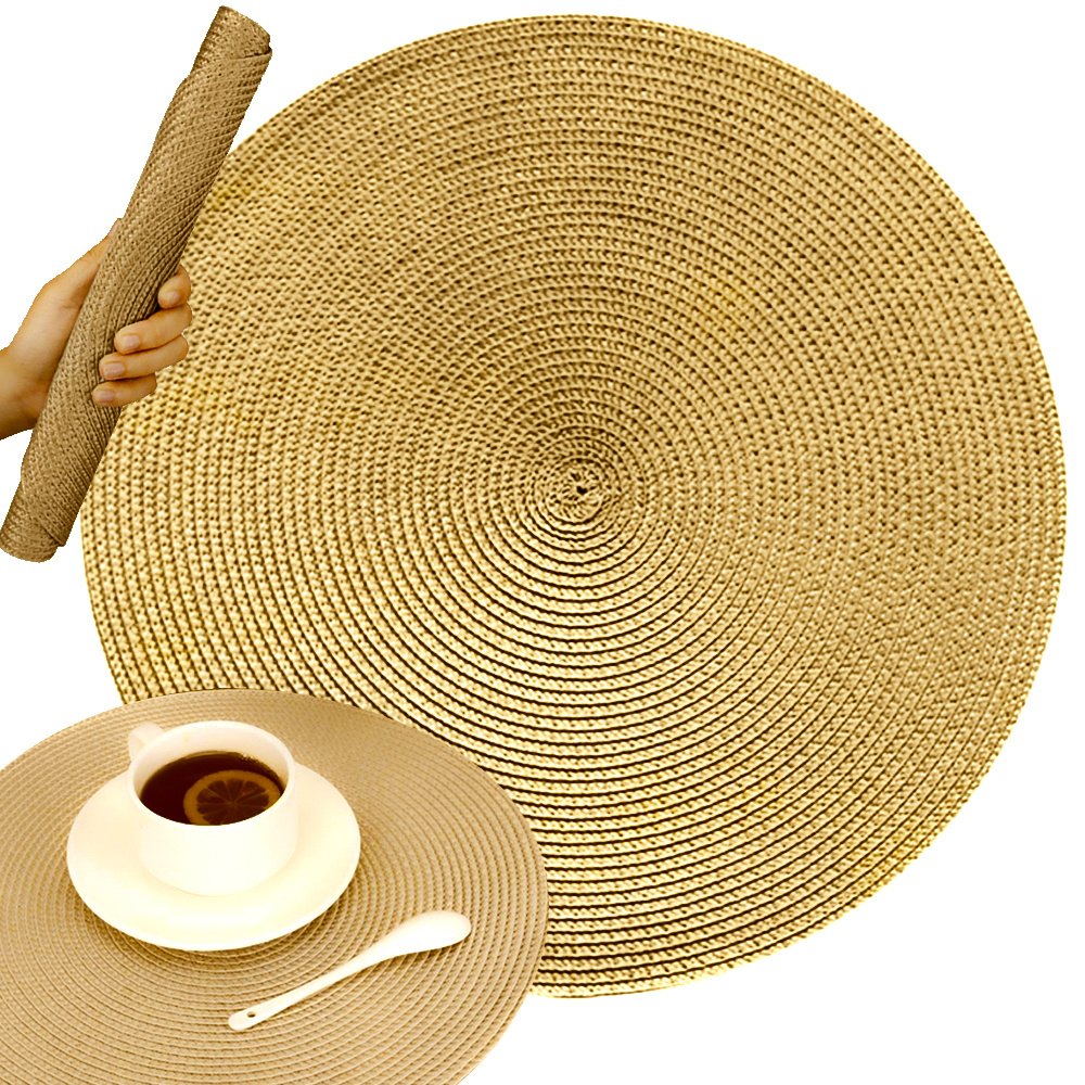 SHACOS Runda Bordstabletter Uppsättning av 6 Bordsunderlägg för Matbord Tvättbara Värmebeständiga Set of 6 Guld