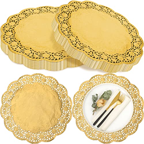 Yexiya 200 st bordstabletter pappersunderlägg spetspapper bordstabletter engångsfolie spets papper bordstabletter bordstabletter för kakor hantverk fest bröllopsdekor (guld, rund)