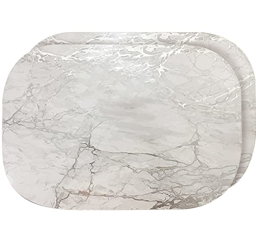Dainty Home Ovala bordstabletter i kork, silverfärgad marmor, värmebeständiga, halkfria, enkla att rengöra, för elegant middag, 30 x 46 cm, set om 2, perfekta för eleganta, moderna hem