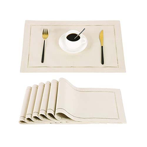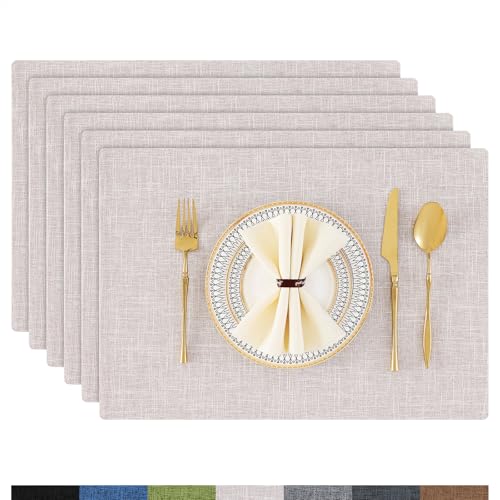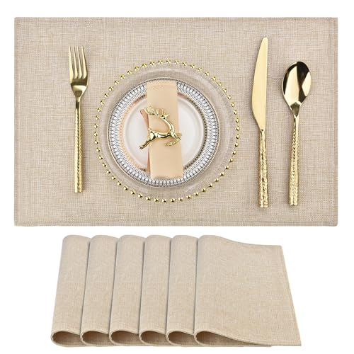 Homaxy Tvättbara set med 6 bordstabletter, avtorkbart linne, värmebeständiga, bordstabletter, halkfria, dubbelsidiga bordstabletter, tyg, beige