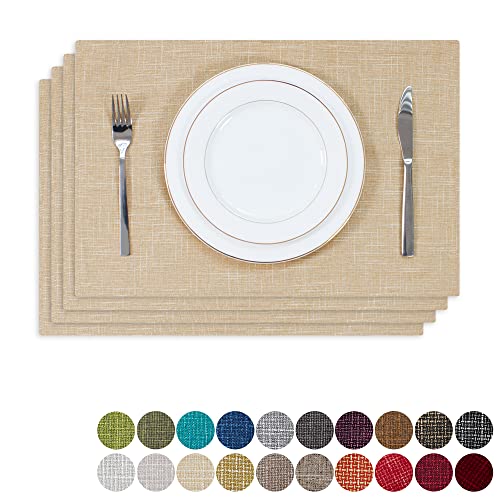 Homaxy Tvättbara set om 4 bordstabletter, avtorkbart linne, värmebeständiga, bordstabletter, halkfria, dubbelsidiga bordstabletter, tyg, beige