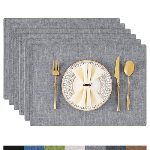 Homaxy Tvättbara set med 6 bordstabletter, avtorkbart linne, värmebeständiga, bordstabletter, halkfria, dubbelsidiga bordstabletter, tyg, mörkgrå