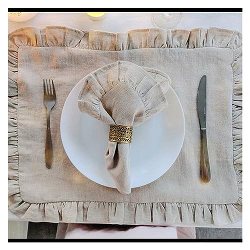 Tyg servett 100 % linne servetter bröllopsmiddag enfärgad volang bordstabletter volang kant klassisk anpassad hem bordsservett (färg: Linne 40 x 40 cm)