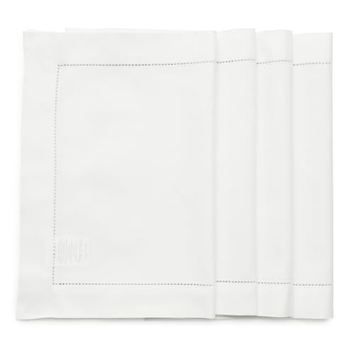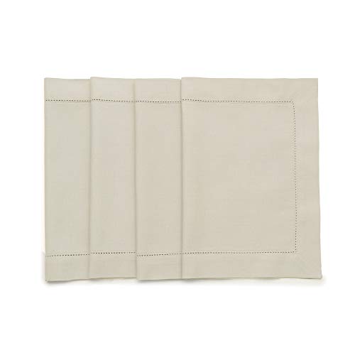 Solino hem bomull linne bordstabletter set med 4 - fållstygn linne bordstabletter 35 x 45 cm - maskintvättbara bordstabletter för våren, sommaren