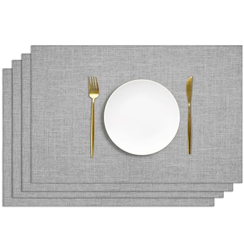 AUAUY Bordstabletter uppsättning med 4, falskt linne tvättbara bordstabletter, dubbelsidiga tillgängliga halkfria värmebeständiga bordstabletter för kök middag restaurang, bordsunderlägg för bord, 30
