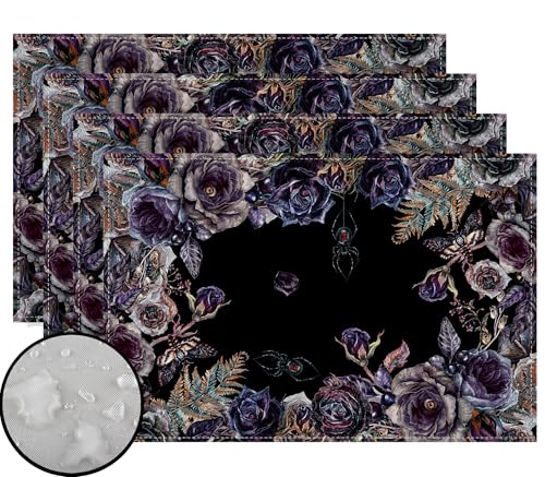 Linne halloween bordstabletter halloween gotisk skalle bordsmattor Day of the Dead Roses dödskalle dekor halloween dekorationer och tillbehör för hem kök bord 30 × 45 cm