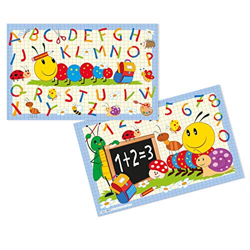 HERMA 19671 Skrivbordsunderlägg dagis Frieda & vänner, 3 stycken, avtorkbara barn skrivunderlägg av kartong, 55 x 35 cm, dubbelsidig motiv bordsunderlägg set för flickor och pojkar