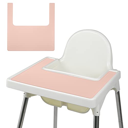 Vicloon Silikonmatta för barnstolar för spädbarn och barn, silikonmatta för barnstol, BPA-fri, vattentät och lätt att rengöra bordsunderlägg, tvättbar (blå) (rosa)