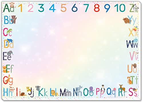blaash® ABC Skrivbordsunderlägg papper DIN A3 glitter | 25 ark block med gott om utrymme för målning, skrivning eller klottring | Underlag skrivbord flickor och pojkar | bordsunderlägg barn ABC
