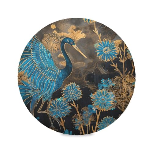 Blå och gyllene påfågel bordsunderlägg runda quiltade vändbara bordsunderlägg tvättbara plastbordsunderlägg barn tallriksunderlägg vattentäta bordsunderlägg för köksbord vintage bordsunderlägg set med