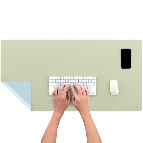 smøla Skrivbordsunderlägg av PU-läder I 85 x 40 cm avtorkbar inkl. XXL musmatta I stort bordsunderlägg, skrivbordsunderlägg – för kontor och hemmakontor I dubbelsidig (agaven-grön/grå)