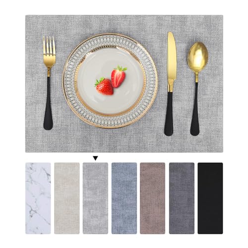 Homaxy Tvättbara Bordstabletter Set Med 6 Vattentäta Bordstabletter, Bordstabletter Avtorkbara, Dubbelsidiga, Bordsunderlägg I Läder, Halkfria Bordstabletter, Ljusgrå