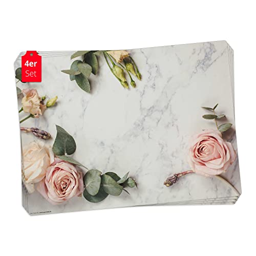 Bordstablett | bordsunderlägg tvättbar – rosor på marmor – tillverkad av förstklassig vinyl (plast – BPA-fri) – 4 stycken – halkfria design – Made in