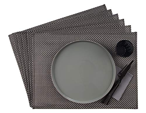 APS Bordsset, 33 x 45 cm, uppsättning av 6 smala band, bordsunderlägg av plast, PVC, värmebeständiga, halkfria bordsmattor, tvättbara, vattenavvisande bordstabletter, silvergrå