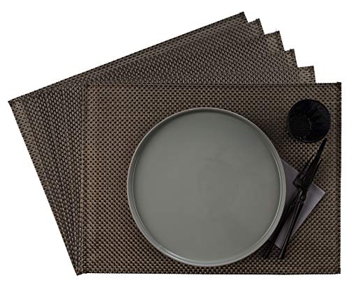 APS Bordsset, 33 x 45 cm, uppsättning av 6 smala band bordsunderlägg av plast, PVC, värmebeständiga, halkfria bordsmattor, tvättbara, vattenavvisande bordstabletter, beige brun