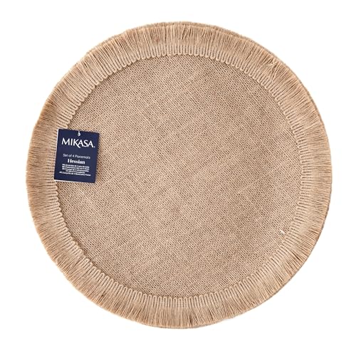 Mikasa runda hessiska bordsunderlägg, set med 4 naturliga bordstabletter för vardagsmiddag, rustika bordsmattor, 38 cm